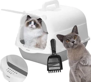 Toaleta dla kota, kuweta zamknięta z łopatką 49x36x35 cm szaro-biała