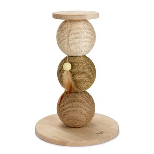 Kulki do drapania Elio Designed by Lotte to niemalże prawdziwe designerskie akcesoria, na których koty z entuzjazmem wypróbują swoje pazury. Elio jest wykonana z jasnobrązowego drewna kauczukowego, przy czym każda piłka ma inną powierzchnię górną (juta, sizal i trawa morska). W prezencie znajdują się już piórka, które zapewnią dodatkową zabawę. Te piłeczki do drapania nie tylko sprawiają radość każdemu kotu, ale także przyciągają wzrok w pomieszczeniu. Zalety w skrócie: