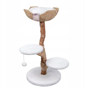 Drapak dla kota, be�owo- bia�y,100cm, na drewnianej nodze, z koszem i dwoma siedziskami