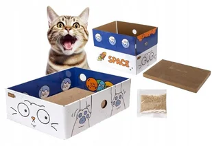 Pudełkowy drapak dla kota 43x30x14,5cm tekturowe pudełko i kryjówka