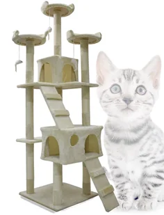 Drapak Dla Kota Beżowy 170CM Drzewko Z Legowiskami Sizal Słupki Domki