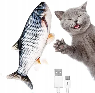 Skacząca pluszowa ryba do zabawy dla kota Nasza rybka to niesamowicie realistyczna zabawka dla kota, która przewraca się, trzepocze i kręci - zupełnie jak pr...