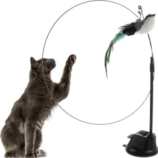 - WĘDKA Z PTASZKIEM - zabawka to długa elastyczna wędka z ciekawymi elementami na końcu. Przyciąga to uwagę kota i zachęca go do skoków i łapania. Ptaszek posiada długi pierzasty ogon oraz delikatny dzwonek.