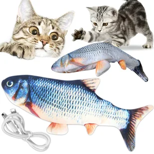 RENEW FORCE SKACZĄCA INTERAKTYWNA ZABAWKA DLA KOTA RYBA ładowana USB PLUSZOWA DUŻA 28cm JUSTAFISH-100