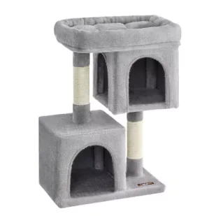 Drapak dla kotów łączy w sobie funkcjonalność i komfort, składa się z 2 przestronnych domków, które zapewniają przytulne miejsce do spania oraz schronienia, które są na tyle obszerne, że pupile mogą w nich wygodnie się ułożyć i zrelaksować co daje im poczucie bezpieczeństwa i prywatności. Platforma widokowa, wyposażona w zdejmowaną poduszkę, która umożliwia ona wygodne obserwowanie otoczenia z wysokości. Pnie sizalowe, które są integralną częścią drapaka są użyteczne do ostrzenia pazurów, która pomaga futrzanemu przyjacielowi utrzymać swoje pazury w dobrej kondycji i chroni meble przed zniszczeniem. Drapak został zaprojektowany z myślą o dużych, cięższych lub bardzo energicznych kotach, zapewniając im bezpieczny plac zabaw. Solidna konstrukcja, wzmocniona podstawa oraz zabezpieczenie przed przewróceniem sprawiają, że jest nie tylko trwały, ale i bezpieczny, spełniając wszystkie potrzeby czworonożnego przyjaciela.