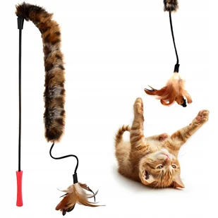 Wędka dla Kota z Futrem i Piórkami Wytrzymała i Solidna Zabawka Wysoka Jakość 62cm