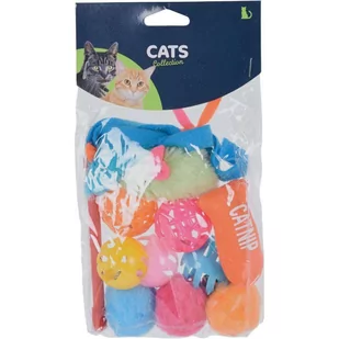 Urozmaić swojemu kotu codzienną zabawę z tym dużym zestawem zabawek, Twój kot będzie zachwycony. Zestaw składa się z 12 elementów, w skład którego wchodzą m.in. piłki, myszki, rybka i wędka. Codziennie wymieniaj zabawki a Twój kot na pewno nie będzie się nudził. Różnorodność kolorów i faktur zaciekawi go i pobudzi do żywiołowej zabawy. W skład zestawu wchodzą:- 5 x kulki- 2 x myszy- 1 x ryba- 1 x patyczek ze wstążką- 3 x pompony