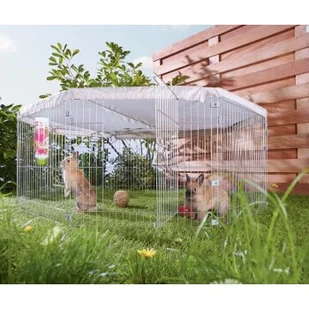 Wybieg zewnętrzny jest odpowiedni dla jednego do dwóch zwierząt. Dzięki łatwemu montażowi i demontażowi można ustawić wybieg AniOne indywidualnie w ogrodzie i dać ulubieńcowi smakołyk. Zalety wybiegu zewnętrznego dla gryzoni AniOne w skrócie: z bocznymi drzwiczkami dla praktycznej i łatwej obsługi zacieniony dach chroni przed słońcem, kotami i drapieżnymi ptakami nie rdzewieje prosta konstrukcja 8 pojedynczych elementów (59 x 58 cm) można połączyć ze sobą za pomocą klipsów Wymiary (Ø): ok. 145 x 59 x 58 cm Materiał: