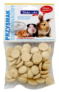 Przysmak Lux śmietankowy - karma uzupełniająca dla gryzoni. Skład: mąka pszenna, proszek jajeczny, zabarwione barwnikiem spożywczym, śmietana, cukier. Sposób stosowania: Karmę podawać w małych dawkach dwa - trzy razy dziennie. Białko ogólne 14,3% Olej i tłuszcz surowy 5,6% Popiół surowy 0,91% Włókno surowe 0,4% ,