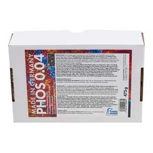 PHOS 0,04 to nowy związek w granulkach, którego fosforany są bezpiecznie usuwane z cyklu akwariowego. Unikalną cechą jest bezpieczne stosowanie PHOS004, ponieważ wartość PO4 nie może spaść do 0,00. Dlatego Ultra PHOS 0,04 jest bezpieczny, a jednocześnie niezwykle skuteczny. Kolor i składniki odżywcze są ściśle związane z materiałem i nie są ponownie uwalniane, dzięki czemu zawartość składników odżywczych w akwarium może być utrzymywana na bardzo niskim poziomie. Skutecznie zapobiega się niepożądanemu wzrostowi glonów, a koralowce mogą rozwijać swoje naturalne kolory.