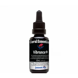 Coral Essentials, Vibrance+ to mieszanka rozpuszczalnych w wodzie, organicznych i syntetycznych związków. Odgrywa istotną rolę we wspomaganiu szybkiego podziału i wzrostu komórek. Jest żywotnie zaangażowany w metabolizm żywych komórek, szczególnie wpływając na syntezę białek oraz metabolizm kwasów tłuszczowych i aminokwasów. Vibrance+ dodaje wigoru i zdrowia koralowcom, rozrostowi polipów i poprawie aktywności. Nic nie zapewnia tak aktywnego doładowania jak Vibrance+.