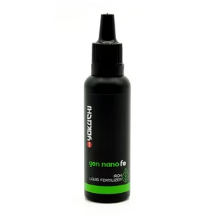 Gen Fe iron – płynny nawóz żelazowy Gen Fe iron liquid fertilizer 30ml Żelazo zaliczane do mikroelementów i pobierane jest przez rośliny jako jon Fe2+. Żelazo jest niezbędne do syntezy chlorofilu, wchodzi w skład niektórych białek i bierze również udział w procesie oddychania komórkowego. Żelazo pod względem mobilności zaliczane jest do pierwiastków pośrednich. Objawy jego niedoboru pojawiają się najpierw na młodych liściach, a z czasem mogą jednak dotyczyć także starszych. Gen Fe to preparat oparty na organicznych związkach żelaza II-wartościowego o doskonałej stabilności i bardzo wysokiej przyswajalności. Gen Fe znacząco uwydatnia czerwoną i pomarańczową barwę poprzez wspomaganie syntezy antocyjanów i karotenoidów. Nowoczesna formuła preparatu pozwala na jego dozowanie podczas działania oświetlenia, jednak stosowanie preparatu przy wyłączonym oświetleniu daje najlepsze efekty.