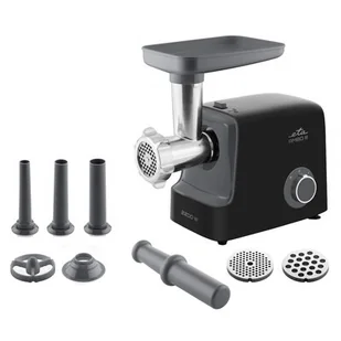 Maszynka do mielenia mięsa Ambo III, Eta Można zmielić mięso i nadziać kiełbasę Metalowa zębatka Nóż do mielenia ze stali nierdzewnej i tarcze Wysokie bezpieczeństwo 2 biegi Bieg wsteczny - funkcja REVERS Metalowa komora mielenia Nóżki antypoślizgowe zapewniające stabilność Zabezpieczenie przed uszkodzeniem silnika Łatwa obsługa Prosty i szybki montaż