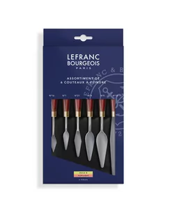 Lefranc & Bourgeois zestaw szpachli malarskich ze stali szlachetnej 6 szt. Wykonane ze stali nierdzewnej noże malarskie francuskiej firmy Lefranc & Bourgeois przeznaczone są do farb olejnych, akrylowych a także past strukturalnych. Wykonane są ze stali nierdzewnej i osadzone są w solidnie wykonanyej rączce drewnianej. Wysoka jakość materiałów z których są wykonane gwarantuje ich długą żywotność. Różnorodność kształtów i rozmiarów zapewnia szerokie spektrum efektów.