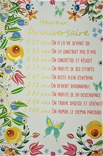 Afie Afie kartka z życzeniami, urodziny, kwiaty, motyle, duży tekst, wiek 20 30 40 50 60 70 80 90 100 lat, pozłacana, wyprodukowana we Francji 65-1228