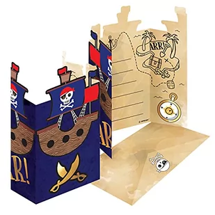 Amscan 9909920 - Zaproszenia pirata, 8 kart z pasującą kopertą, zaproszenia, urodziny dzieci, impreza tematyczna, karnawał