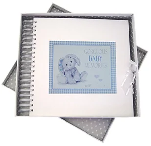 Białe bawełniane kartki nowe dziecko, karta i książeczka z pamięci, niebieski królik, tablica, biały, 27 x 30 x 4 cm