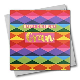 Claire Giles Happy Birthday babcia, kolorowe diamenty, kartka z życzeniami z tekstem foliowana w błyszczące złoto COL034