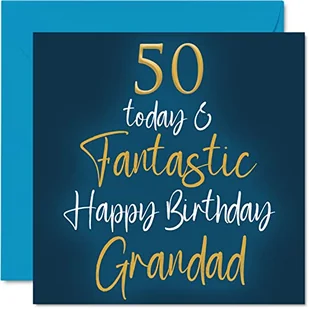 Fantastyczne kartki na 50. urodziny dla dziadka - 50 'Today & Fantastic' - kartka urodzinowa dla dziadka od wnuka wnuczki, prezenty urodzinowe dla dziadka, 145 mm x 145 mm kartki urodzinowe