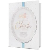 Elegancki karnet B6 z okazji chrzcin. Bogate zdobienia, połyskujące cyrkonie, perłowa folia oraz brokat. Wewnątrz karnetu życzenia oraz elegancka koperta. Format: 19.5x13 cm.