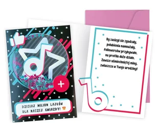 Każda kartka z serii Konfetti Kukartka w zależności od wzoru posiada element wypełniony konfetti ( brokat, złote gwiazdki, cekiny, kolorowe kuleczki). Oprócz tego, kartki z tej serii są zabawne, kolorowe na zewnątrz i w środku, mają też dodatkowe dekoracje, w zależności od wzoru: tłoczenia, kolorowe folie metaliczne, elementy biżuteryjne, wstążeczki itp. Cechy szczególne: wielkość: B6, 16.6 x 11.7 cm po złożeniu, koperta: w zestawie, kolorowa.