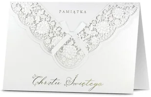 Karnet Chrzest. Artykuł papierniczy. Kartka jest bogato i różnorodnie zdobiona (zależnie od wzoru: metaliczna folia, lakier perłowy, brokat, przyklejone elementy 3d - wypukłe wstawki papierowe, elementy biżuteryjne, tłoczenia)Kartka zawiera życzenia i kolorowy środekW zestawie znajduje się koperta,. . .
