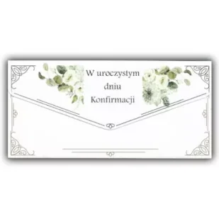 Po złożeniu format kartki DL, wyjątkowe złocenia, w środku życzenia i kieszonka na pieniądze. Dodatkowa koperta