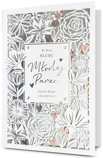 Karnet Ślub. Artykuł papierniczy. Kartka jest bogato i różnorodnie zdobiona (zależnie od wzoru: metaliczna folia, lakier perłowy,brokat, przyklejone elementy 3d - wypukłe wstawki papierowe, elementy biżuteryjne, tłoczenia)Kartka zawiera życzenia i kolorowy środekW zestawie znajduje się koperta,. . .