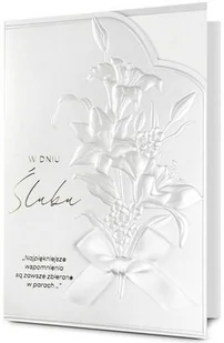 Karnet Ślub KL. Artykuł papierniczy. Kartka jest bogato i różnorodnie zdobiona (zależnie od wzoru: metaliczna folia, lakier perłowy,brokat, przyklejone elementy 3d - wypukłe wstawki papierowe, elementy biżuteryjne, tłoczenia)Kartka zawiera życzenia i kolorowy środekW zestawie znajduje się koperta,. . .