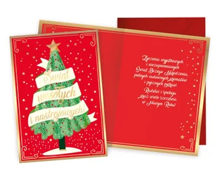 Karnet Passion Plus PP-2263 Boże Narodzenie Kartka wielkości B6, zdobiona w zależności od wzoru metaliczną folią lub brokatem. Każda kartka posiada kolorowe życzenia w środku i dopasowaną kopertę w komplecie. Wymiary karnetu po złożeniu: 11,7 x 16,6 cm.