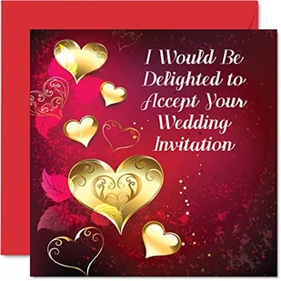 Karta akceptacyjna RSVP na wesela i przyjęcia - I Would Be Delighted - karty RSVP ślub, zaproszenia na zaręczyny przyjęcie, 145 mm x 145 mm kartka okolicznościowa