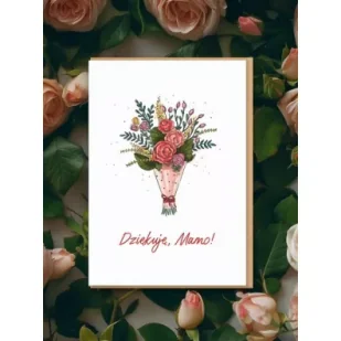 250 g/m2 W zestawie elegancka koperta z eko kraftu Wymiary koperty: 12,5 cm 17,5 cm Gramatura koperty: 100 g/m2 Zestaw zapakowany w folię Idealna kartka dla mamy Wyprodukowano w Polsce