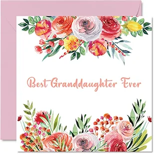 Kartki urodzinowe dla wnuczki - Best Granddaughter Ever - Piękna kartka urodzinowa dla wnuczki od niani dziadka babci babci, prezenty urodzinowe, 145 mm x 145 mm kartki urodzinowe
