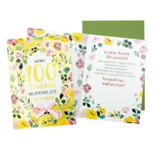 Kartka Dream Cards "W dniu 100 urodzin" DK-1117 Kartka B6 z ozdobnej serii Dream Cards na urodziny - nieduża, ale robi wrażenie dzięki atrakcyjnej kolorystyce i ciekawym zdobieniom. To idealny wybór łączący przyjazną cenę z jakością. Cechy szczególne wielkość B6, 16. 6 x 11. 7 cm po złożeniu, koperta w zestawie, kolorowa, zdobienia kolorowe, różnorodne, bogate w zależności od wzoru przyklejane dekoracje, elementy biżuteryjne, odstawniki, brokat metaliczne folie, tłoczenia itp. , okazja urodziny