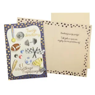 Kartka Dream Cards "Twoje urodziny" DK-1051 Kartka B6 z ozdobnej serii Dream Cards na urodziny - nieduża, ale robi wrażenie dzięki atrakcyjnej kolorystyce i ciekawym zdobieniom. To idealny wybór łączący przyjazną cenę z jakością. Cechy szczególne wielkość B6, 16. 6 x 11. 7 cm po złożeniu, koperta w zestawie, kolorowa, zdobienia kolorowe, różnorodne, bogate w zależności od wzoru przyklejane dekoracje, elementy biżuteryjne, odstawniki, metaliczne folie, tłoczenia itp. , okazja urodziny