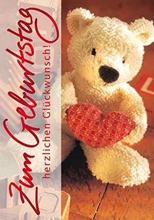 Perleberg Wysokiej jakości kartka urodzinowa Basic Classic Collection miś z sercem - niedźwiedź kartka na urodziny z kopertą - kartki urodzinowe w jakości premium 11,6 x 16,6 cm