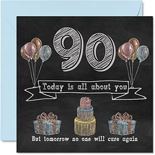 Śmieszne kartki urodzinowe na 90. urodziny dla mężczyzn i kobiet - tablica kredowa - kartka urodzinowa dla taty dziadka pradziadka babci niani babci mamy, 145 mm x 145 mm humor banter kartki