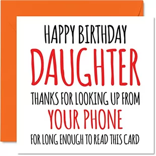 Śmieszne kartki urodzinowe dla córki – szukaj z telefonu – dowcipna kartka urodzinowa dla córki od mamy taty, córki banter prezenty urodzinowe, 145 mm x 145 mm kartki z życzeniami urodzinowe prezent