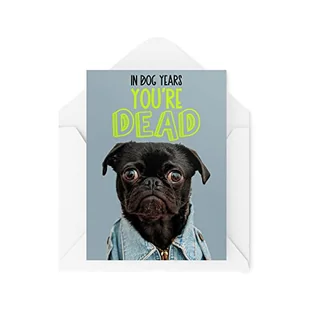Śmieszne nowości kartki okolicznościowe | 'In Dog Years You're Dead' | Urodzinowy mops pies stary rodzic dziadek przekomarzanie się najlepszy przyjaciel zabawny żart | CBH1256