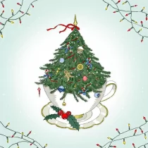 Swarovski Clear Creations Karnet okolicznościowy Boże Narodzenie, Choinka w filiżance