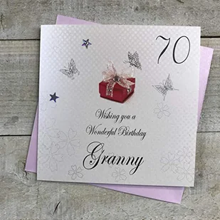WHITE COTTON CARDS white cotton cards 70 'Wishing you a Wonderful Babci' ręcznie robiona kartka na 70-te urodziny, biała, bdp70-babcia bdp70-Granny