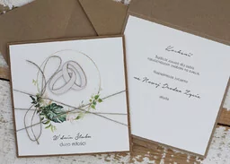Kartka ręcznie robiona z okazji ślubu. Wymiary 14x14 cm w zestawie z kopertą. Kartka wykonana z najwyższej jakości starannie dobranych materiałów i dodatków - papieru bawełnianego ekologicznego 100% bawełny wraz z ozdobną tekturką. Personalizacja za dopłatą.