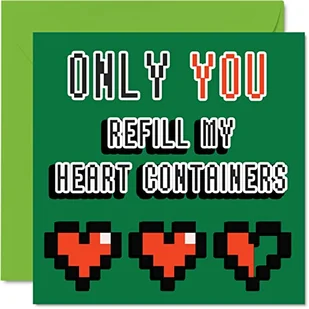 Zabawna kartka rocznicowa dla gracza dla chłopaka dziewczyny męża żony - 8 bitów miłości - retro gamingowa kartka walentynkowa dla niej dla niego kobiet mężczyzn, 145 mm x 145 mm urodzinowe kartki z