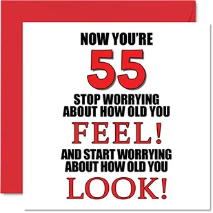 Zabawne kartki na 55. urodziny dla mężczyzn i kobiet – 'How old You Look – kartka urodzinowa dla taty mamy dziadka babci wujka cioci kuzyna przyjaciela, kartki okolicznościowe 145 mm x 145 mm kartki