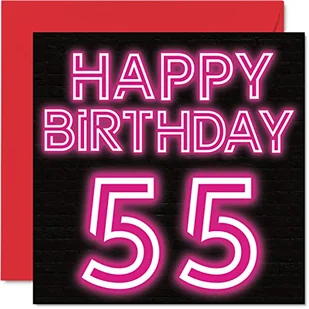 Zabawne kartki na 55. urodziny dla mężczyzn i kobiet - neonowy blask - kartka urodzinowa dla taty mamy dziadka babci wujka cioci kuzyna przyjaciela, 145 mm x 145 mm kartki z życzeniami na 55. urodziny