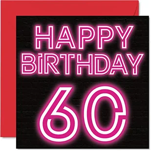 Zabawne kartki na 60. urodziny dla mężczyzn i kobiet - neonowy blask - kartka urodzinowa dla taty mamy dziadka babci babci wujka cioci kuzyna, 145 mm x 145 mm kartki z życzeniami na 60. urodziny