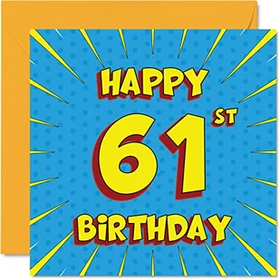 Zabawne kartki urodzinowe dla mężczyzn i kobiet - komiks - kartka urodzinowa dla niani, babci, taty, mamy, dziadka, kuzyna, cioci, wujka, 145 mm x 145 mm, kartka z życzeniami na 61. urodziny