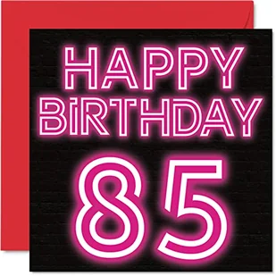 Zabawne kartki na 85. urodziny dla mężczyzn i kobiet - neonowy blask - kartka urodzinowa dla taty mamy dziadka babci babci wujka cioci 145 mm x 145 mm kartki okolicznościowe, kartka na 85. urodziny