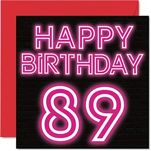 Zabawne kartki na 89. urodziny dla mężczyzn i kobiet - neonowy blask - kartka urodzinowa dla taty mamy dziadka babci babci wujka cioci 145 mm x 145 mm kartki okolicznościowe, kartka na 89. urodziny