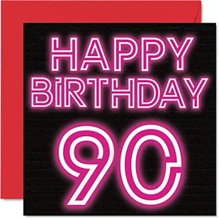 Zabawne kartki urodzinowe na 90. urodziny dla mężczyzn i kobiet - neonowy blask - kartka urodzinowa dla dziadka dziadka niani babci babci taty mamy, 145 mm x 145 mm kartki z życzeniami, kartka na 90.